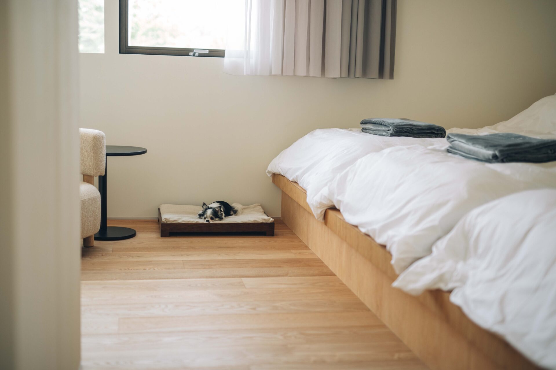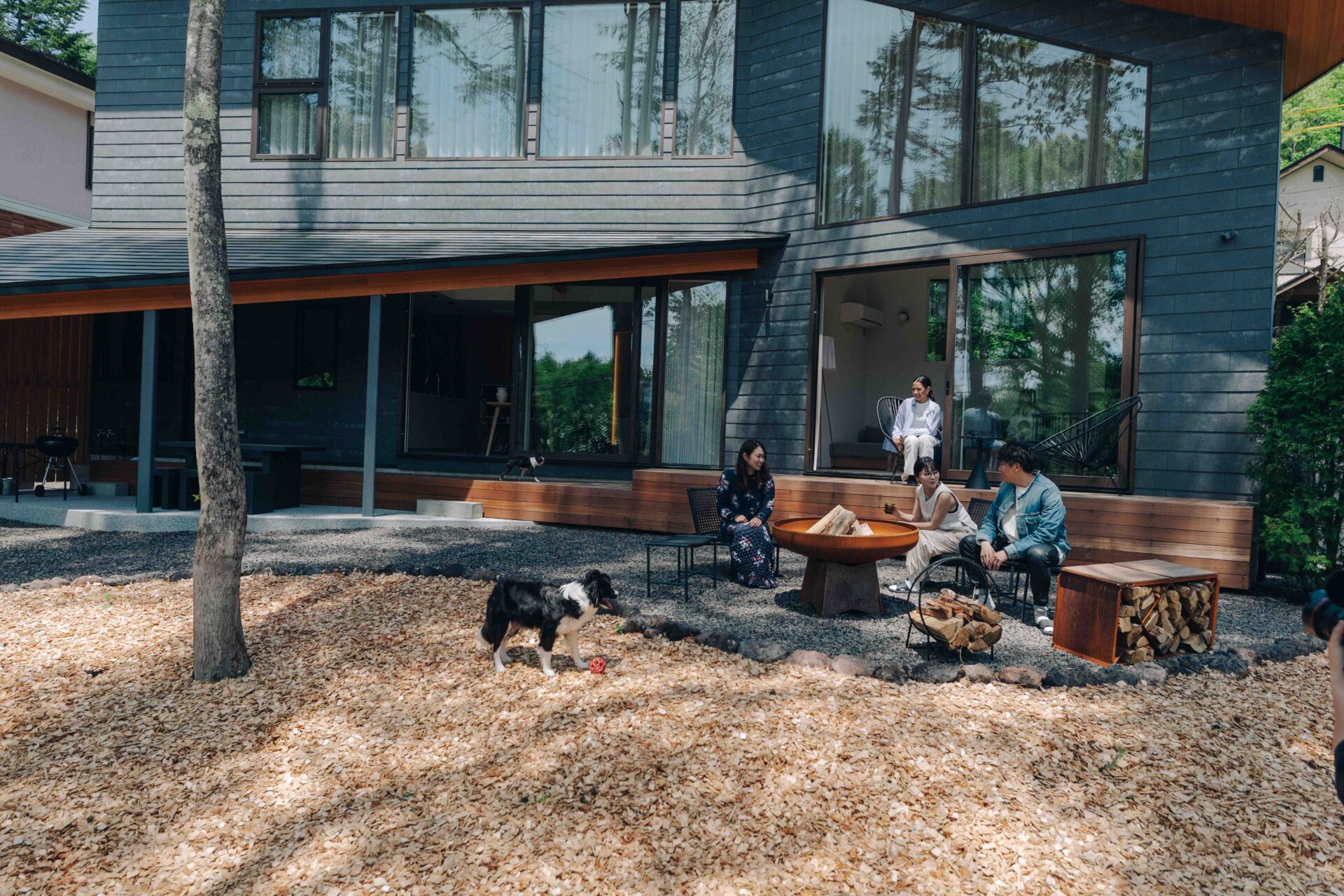 開放的で大きな南向きの窓から、どの部屋にいても庭を望むことができる設計デザイン。宿泊する家族・愛犬・仲間たちすべてが、一体感を抱きながらシームレスに繋がることができます。