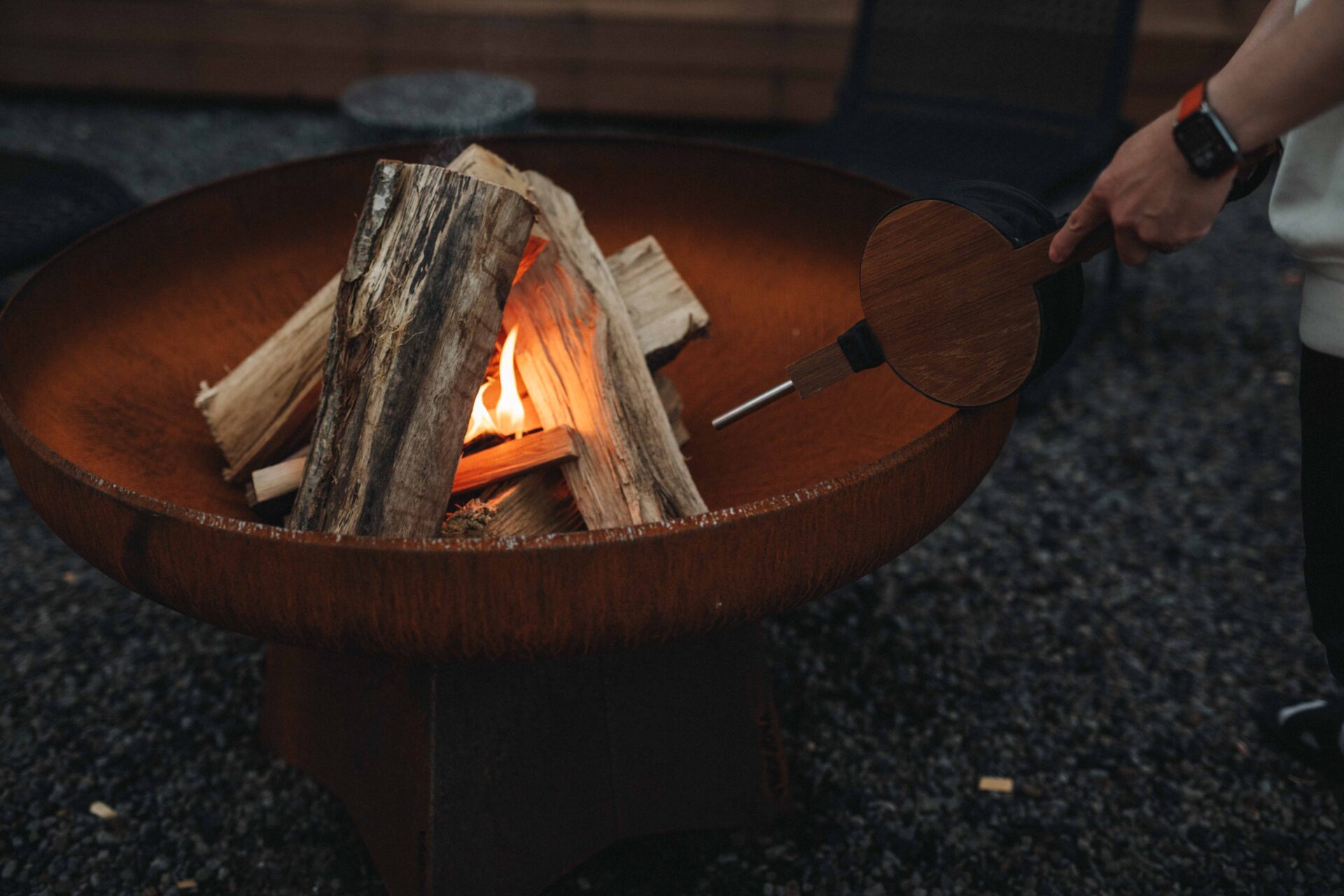 炎の揺らぎを眺めながら、豊かな時間が流れる焚き火タイムを
