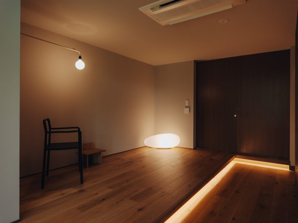 浴室に一番近い寝室、小上がりに設置されたマットレスでくっつけるも良し