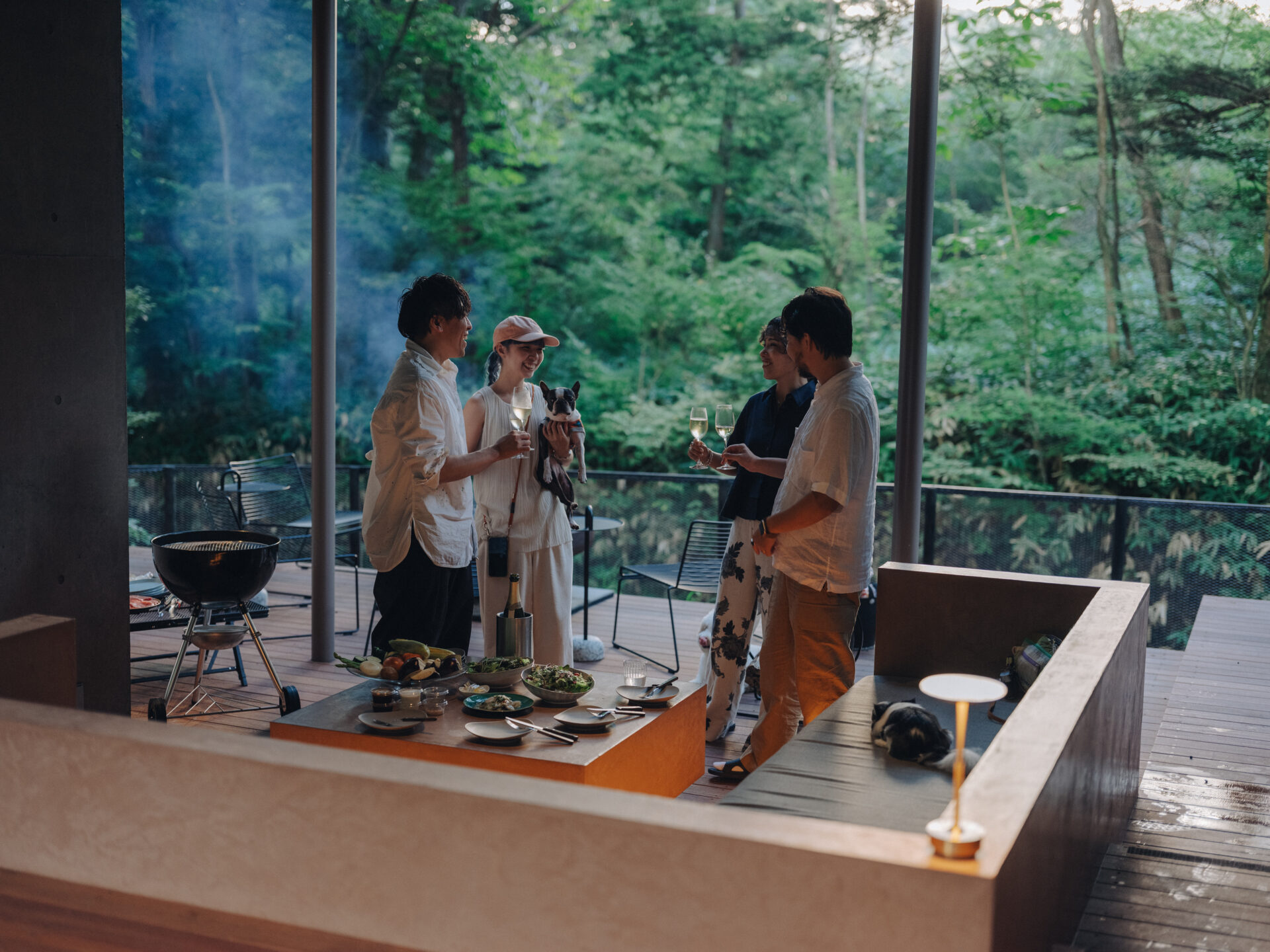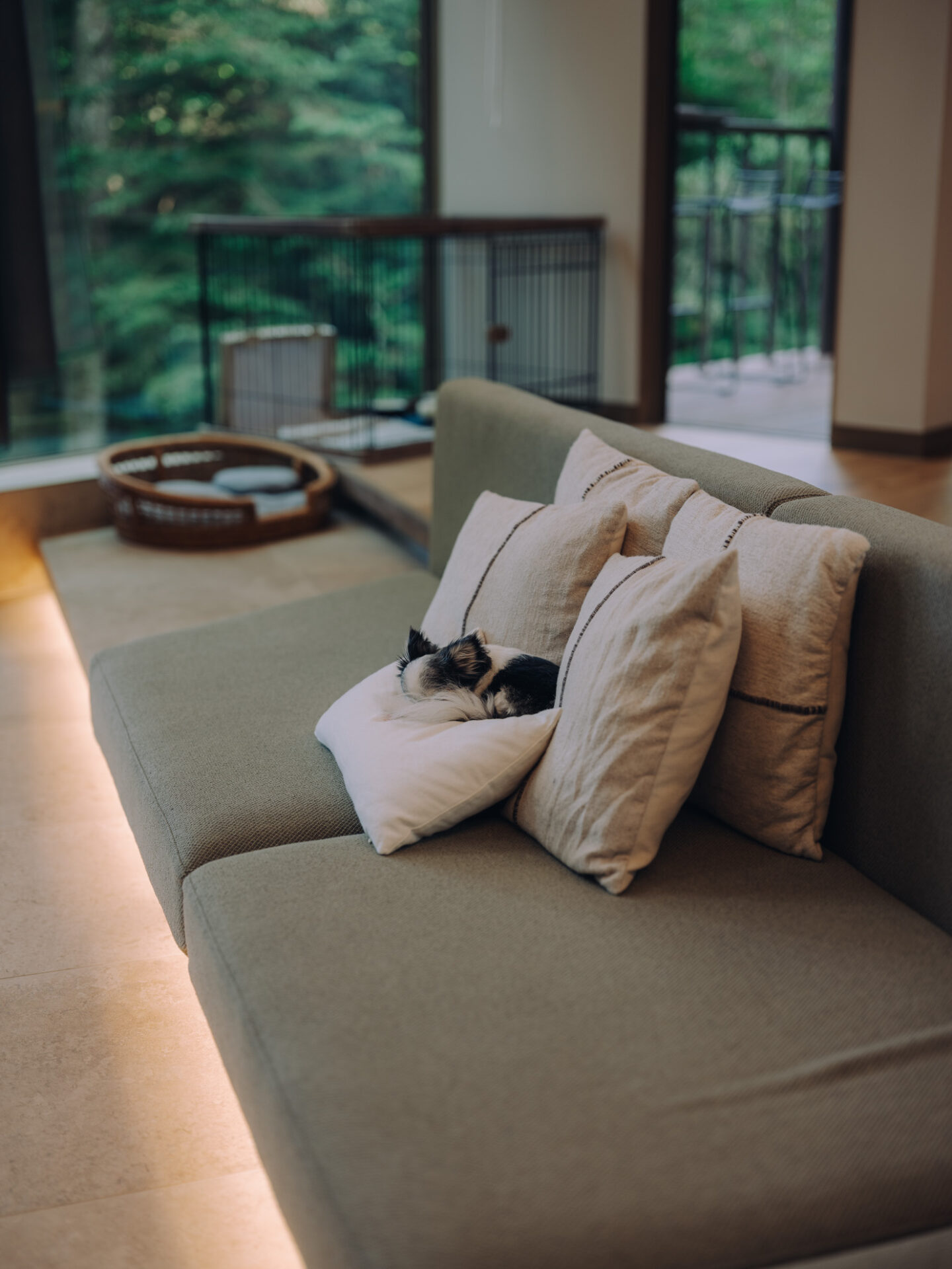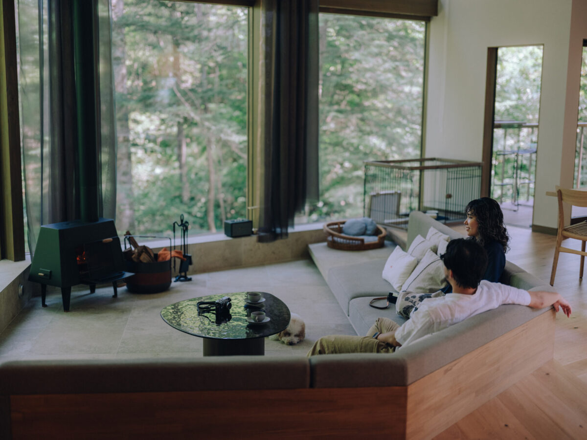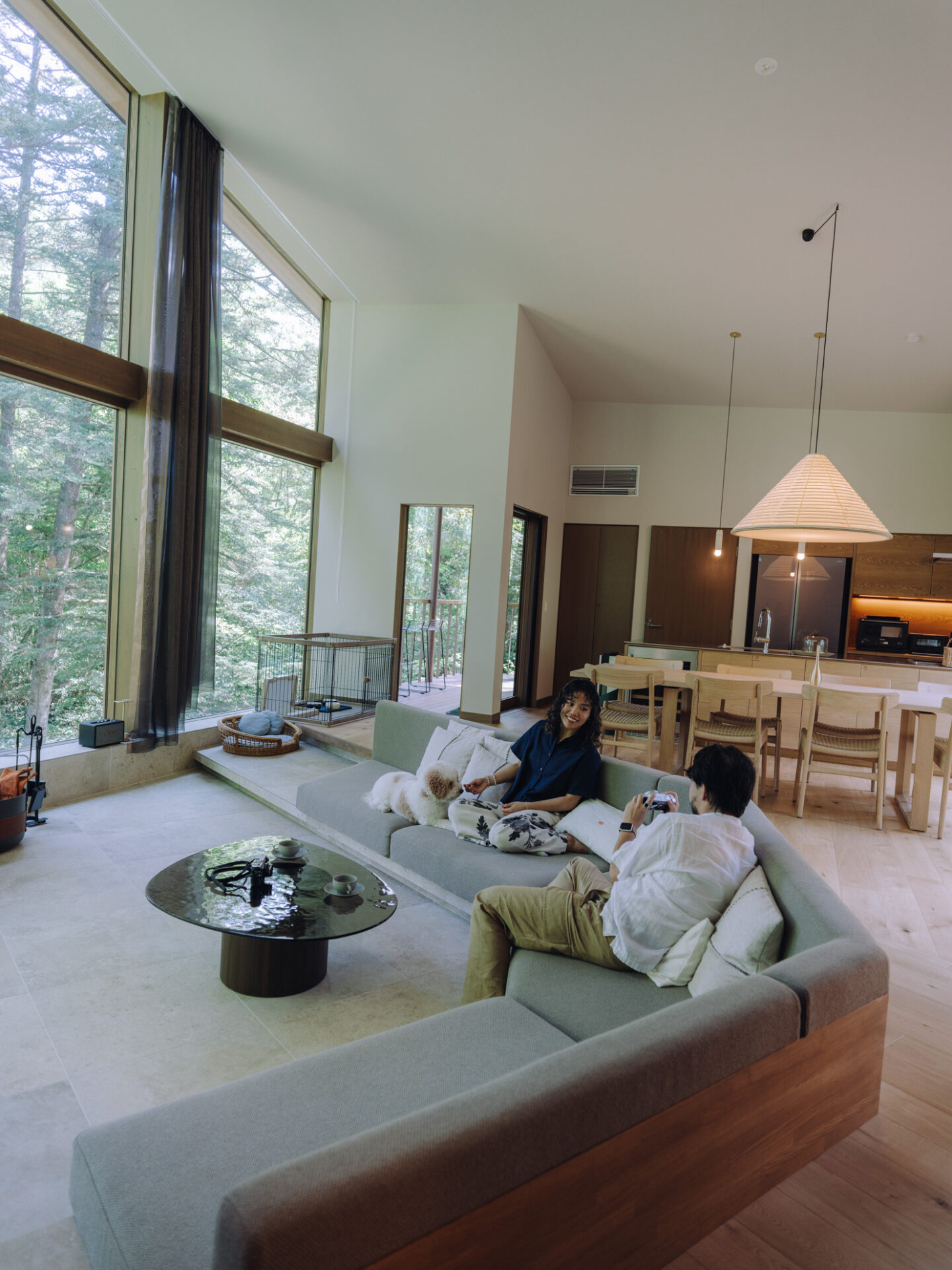 3つの寝室を備え、家族や仲間、愛犬との旅にふさわしい、軽井沢365でも最大級のプライベートヴィラです。